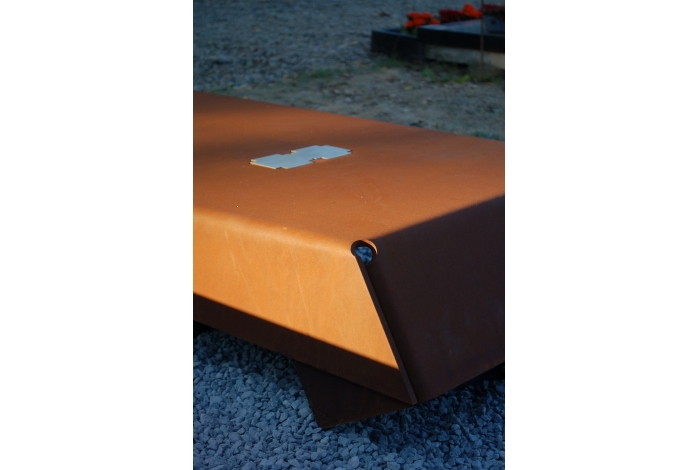 Dit grafmonument in cortenstaalplaat van 10 mm dik is geplooid uit 1 stuk.